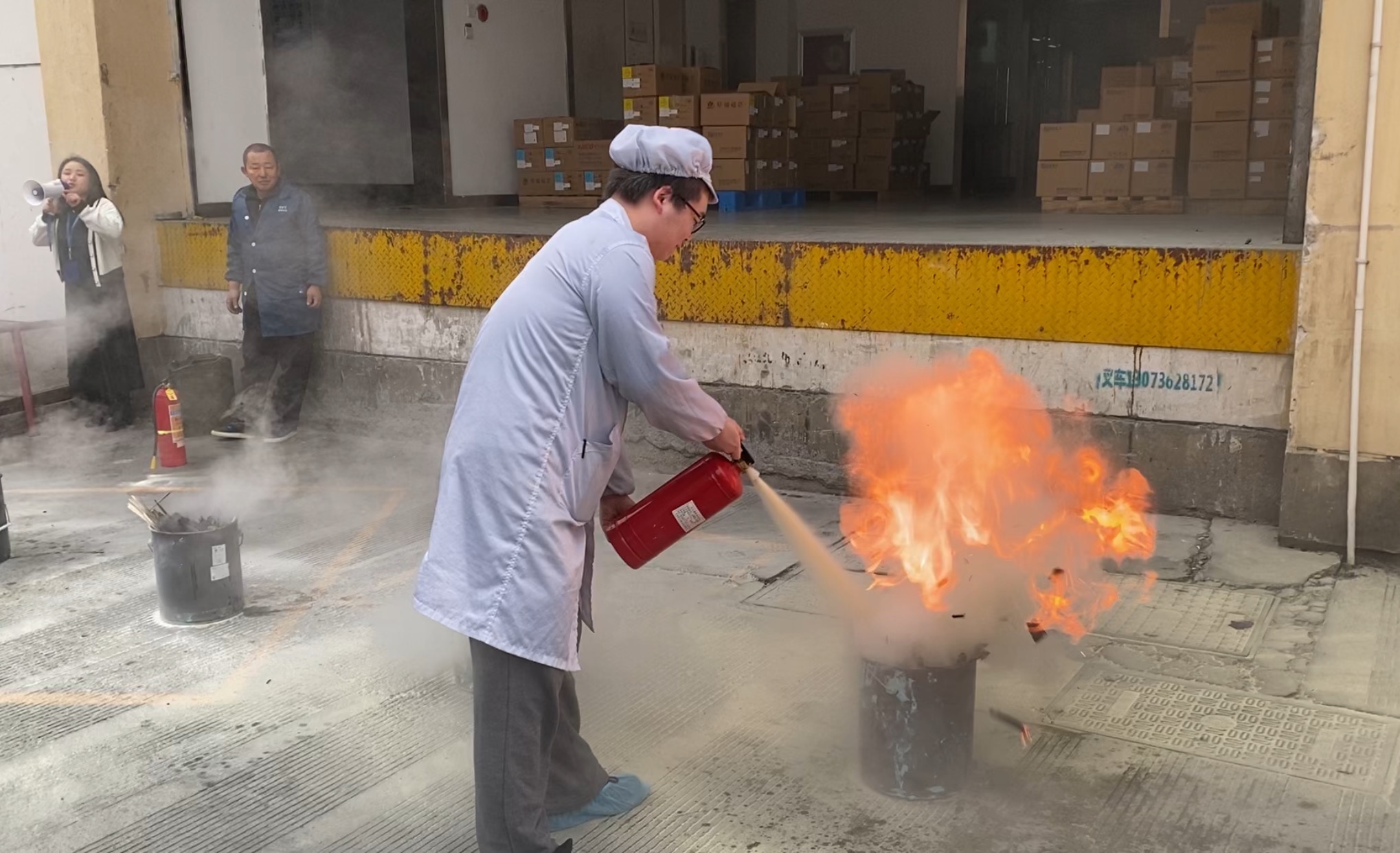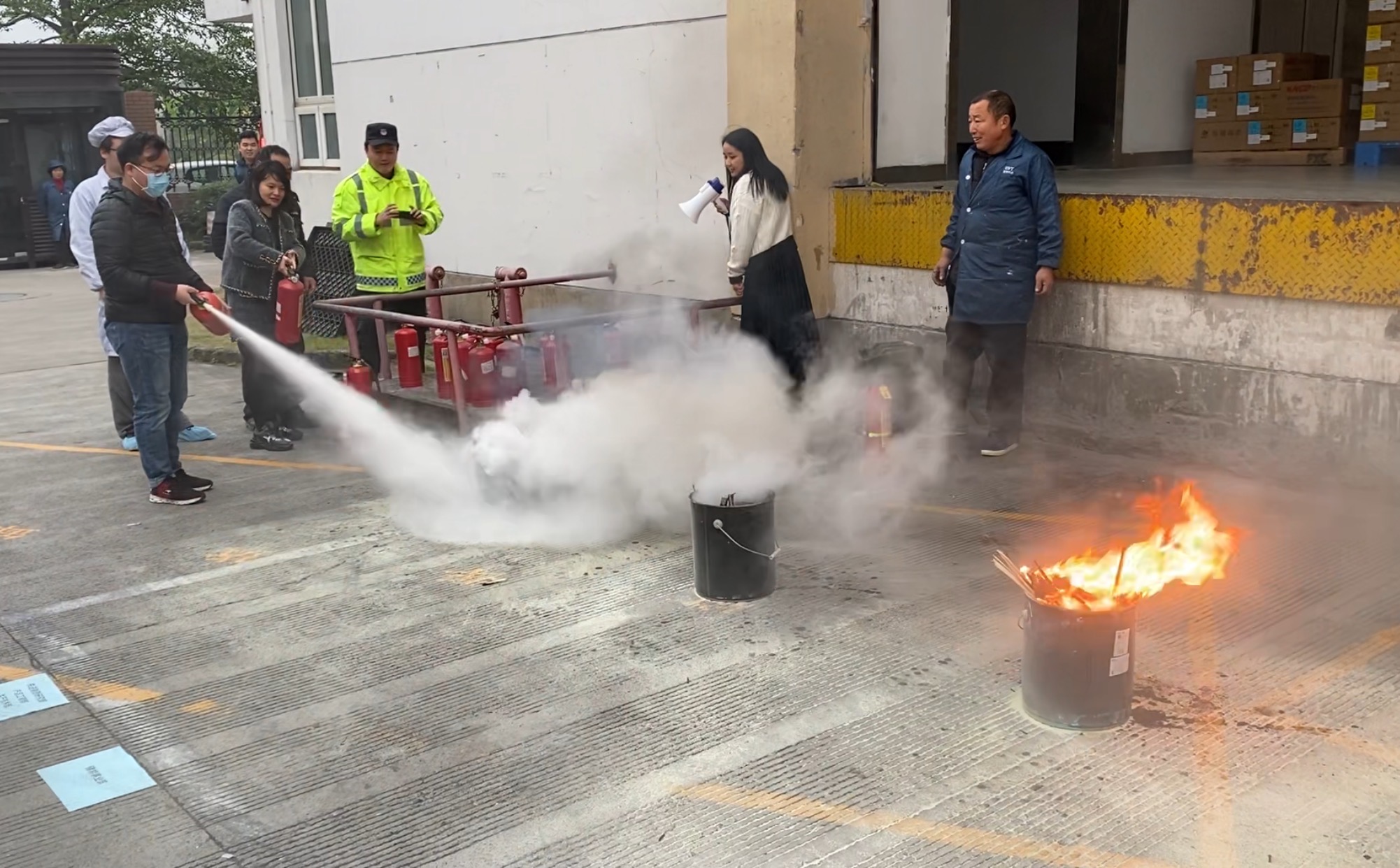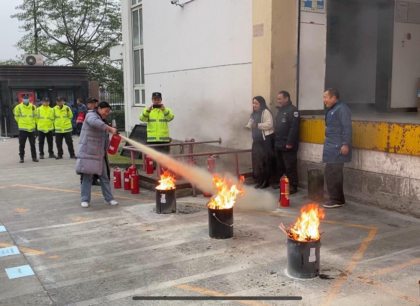 員工們在完成學習、掌握滅火器的使用技能后,紛紛上前進行演示。