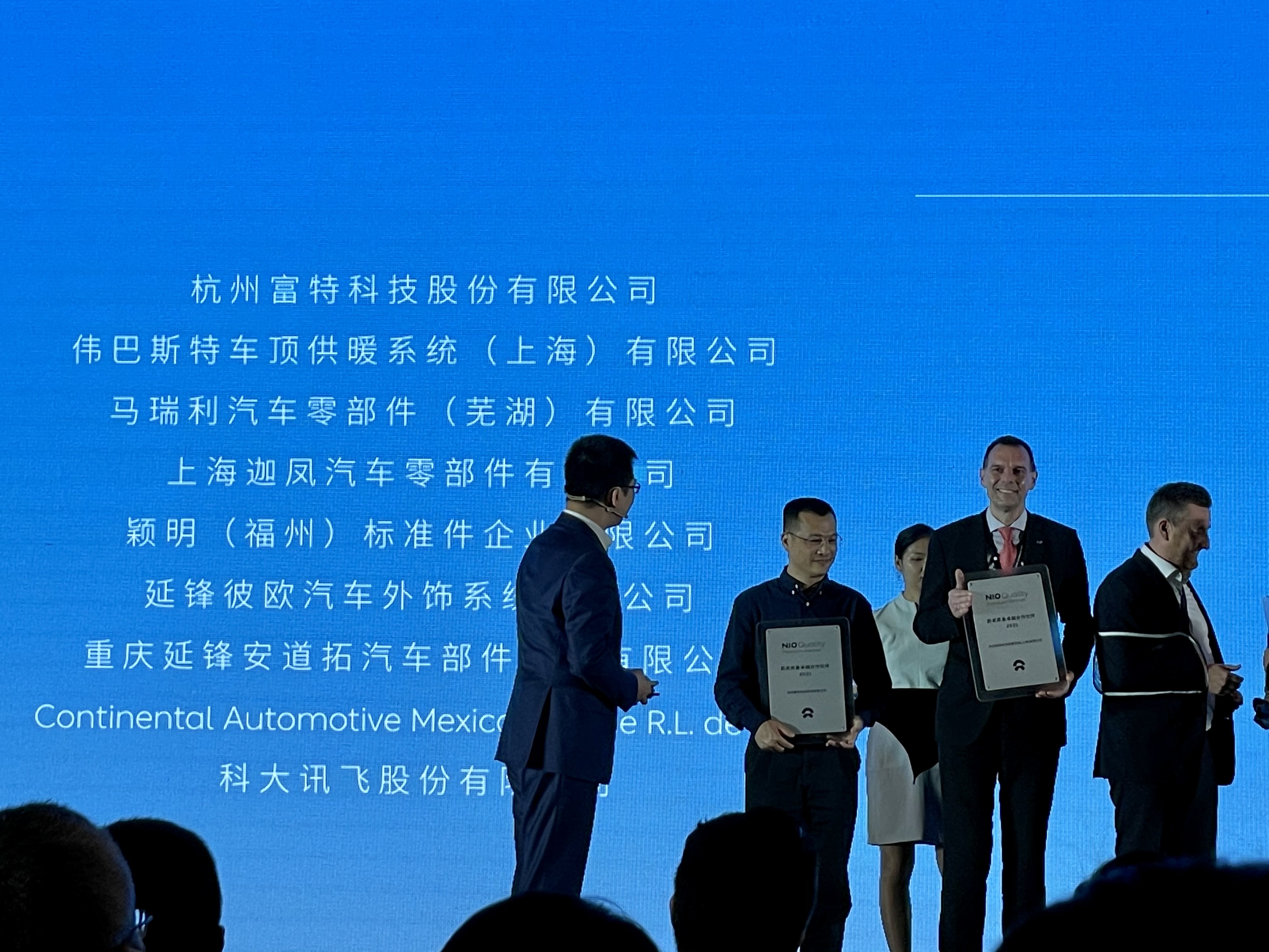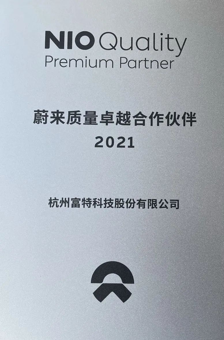 大會(huì)現(xiàn)場(chǎng),蔚來(lái)汽車(chē)執(zhí)行副總裁沈峰先生,親自為富特科技頒發(fā)了NIO Quality Premium Partner(NQPP蔚來(lái)質(zhì)量卓越合作伙伴獎(jiǎng)項(xiàng)),表達(dá)了對(duì)富特科技產(chǎn)品的巨大信任和肯定。