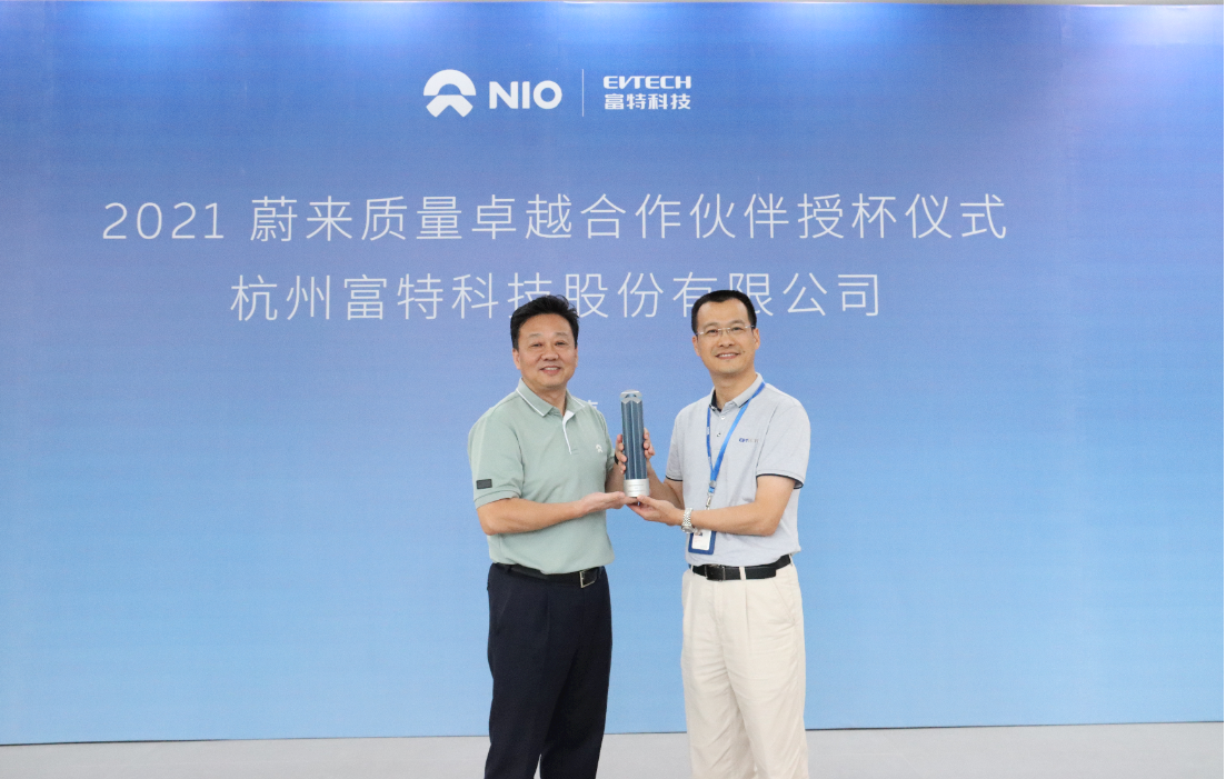 7月9日下午,2021蔚來質量卓越合作伙伴授杯儀式于浙江富特科技股份有限公司安吉工廠舉辦。